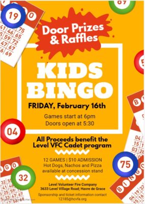 Bring the kids to Level Volunteer Fire Company for family night at Kid’s Bingo!!