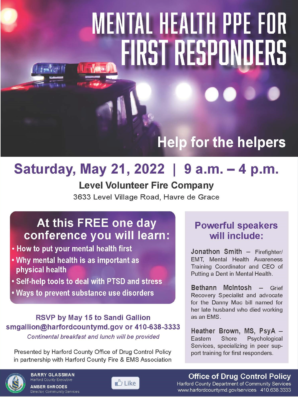 Level Volunteer Fire Company is hosting the Harford County Office of Drug Control Policy “Mental Health PPE for First Responders” Conference.