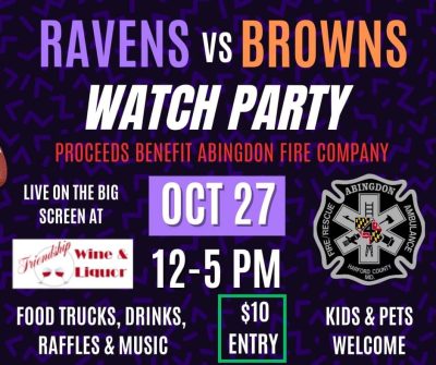 Come Join AFC as we cheer on the Baltimore Ravens! Food Trucks will be available, Alcohol, and Raffles!!!! 100% of entry fees will benefit the Abingdon Fire Company. Children and Pets are welcome join!