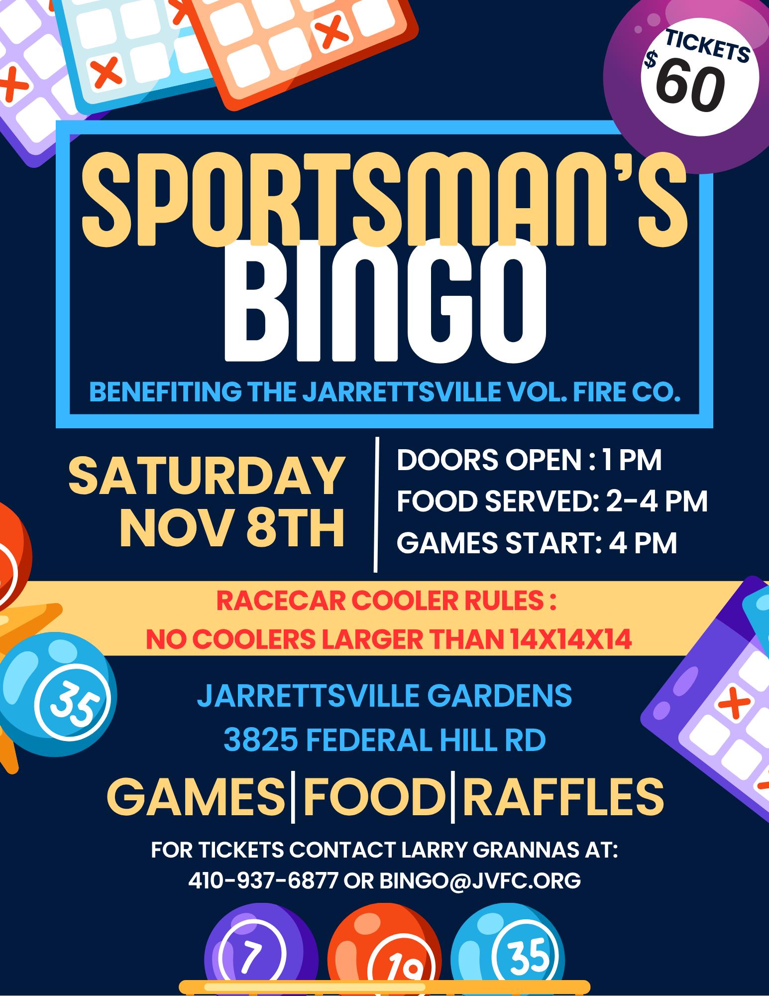 Grab your tickets before they sell out for the Jarrettsville Sportsman Bingo!