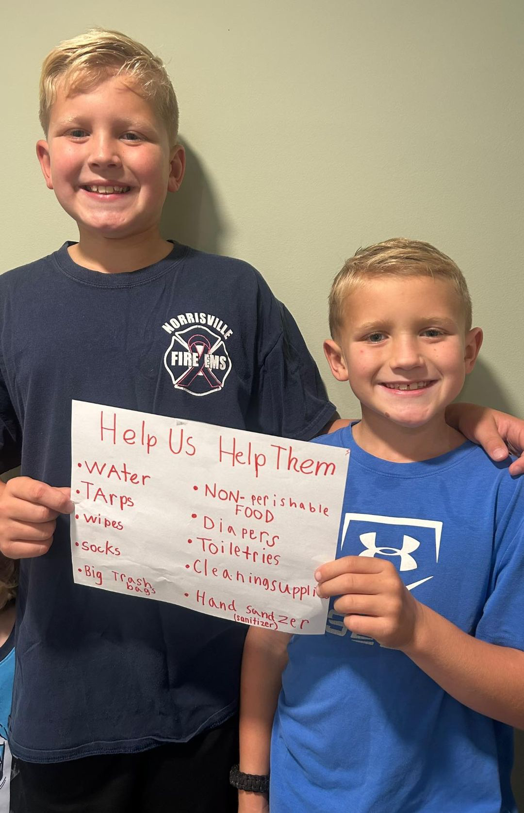 This effort wouldn’t be possible without the two amazing young Harford County residents who started it all, brothers Jack (10) and Nick Watkins (8). The boys stepped up to help those impacted by the storm, working alongside members of the Norrisville Volunteer Fire Company and generous donations from the local community. Their multi-day community collection efforts helped to fill a 53 foot trailer with non-perishable food, cleaning supplies, diapers, wipes and so much more! The truck is currently headed for North Carolina to bring much-needed supplies to local residents.